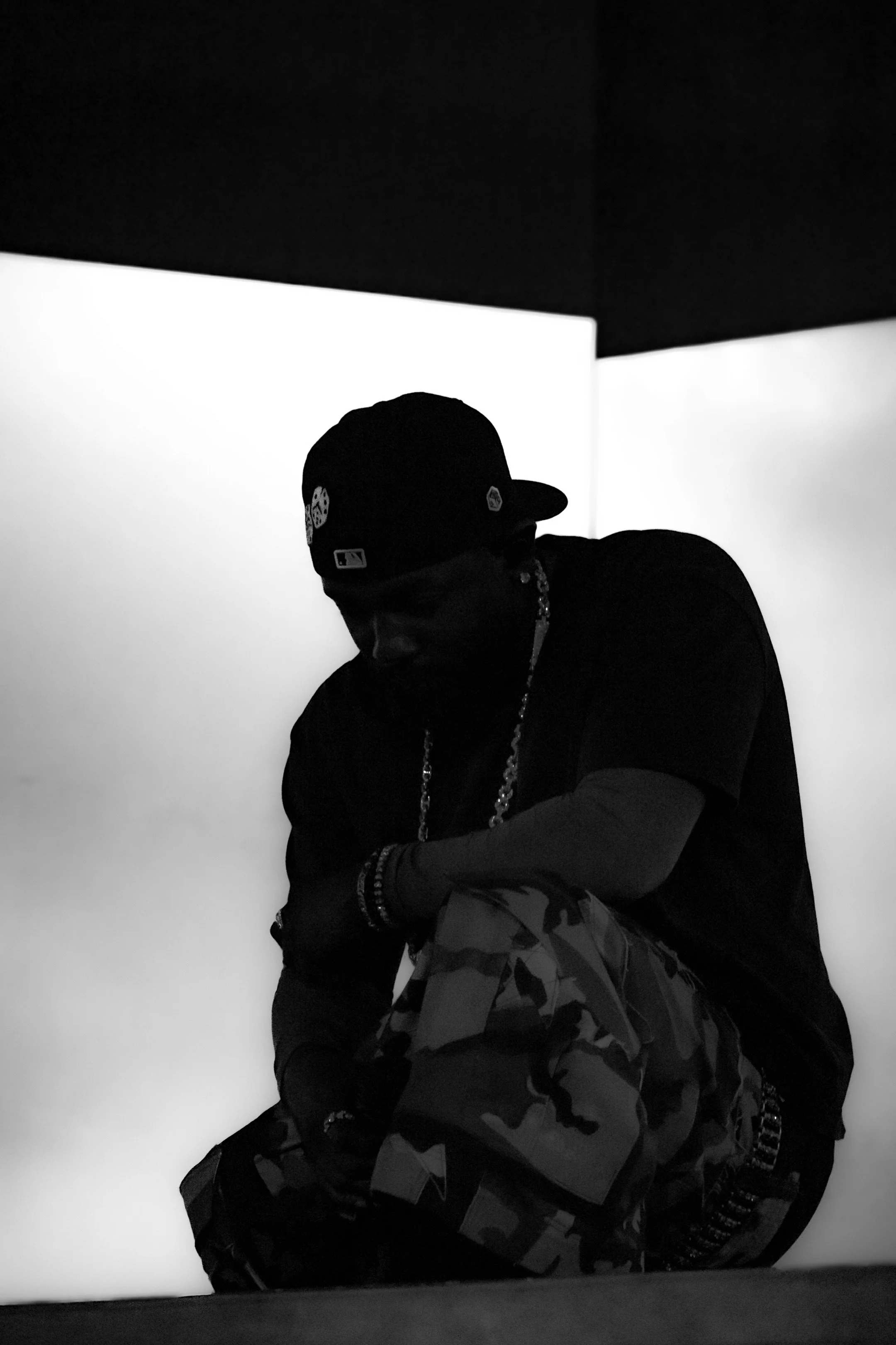 A more intimate image features Kendrick, hunched forward, head low before “United in Grief.” The photo is stark and stripped down—mirroring the rawness of the song - photo by willschaos.