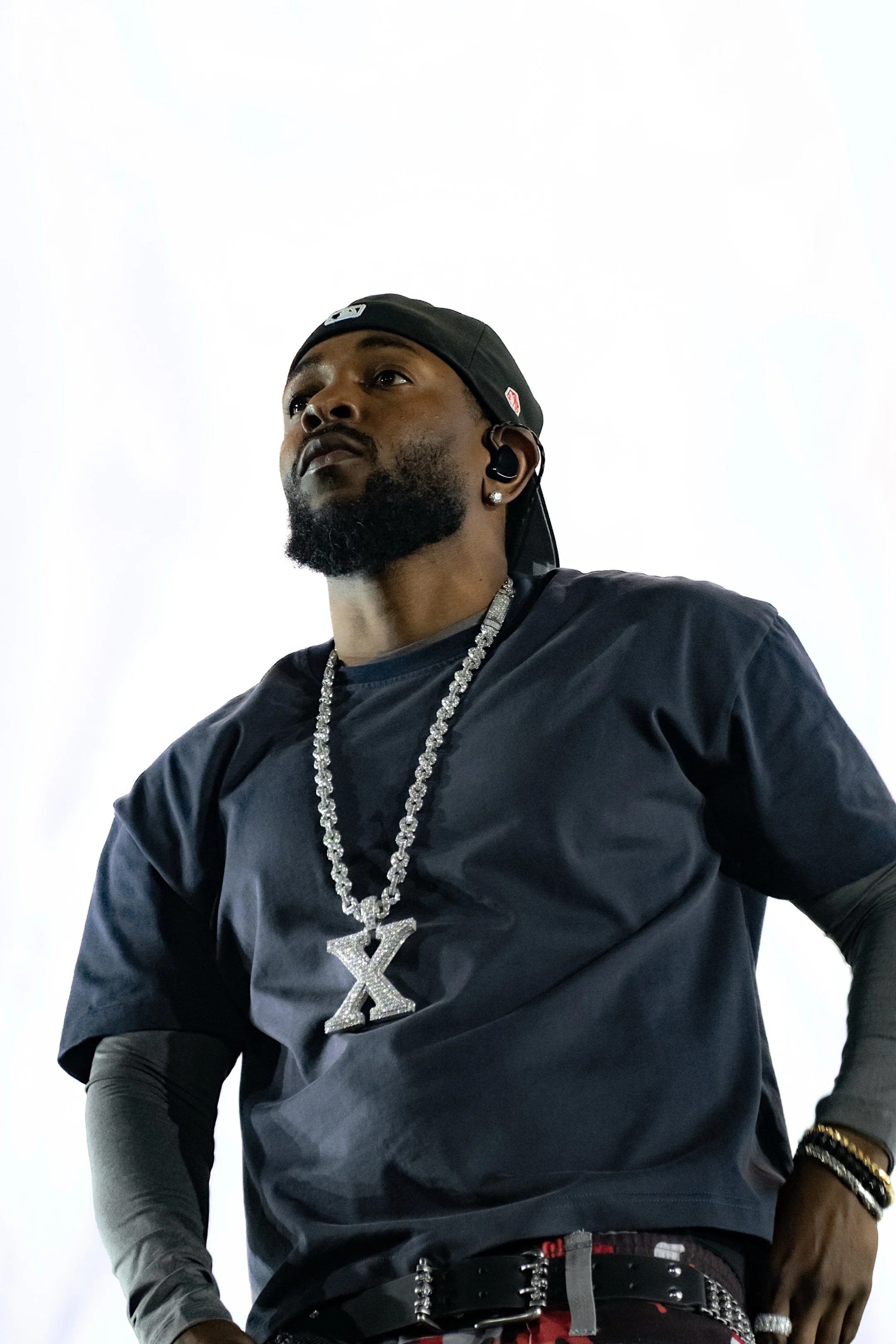 The air buzzed with humidity and adrenaline. Stadium lights dimmed to near-darkness as Kendrick stood motionless, bathed in red light before launching into “The Heart Part 5.” The crowd, silent for a breath, then roared alive. The energy was raw, almost spiritual throughout the over 2 1/2 hour performance.